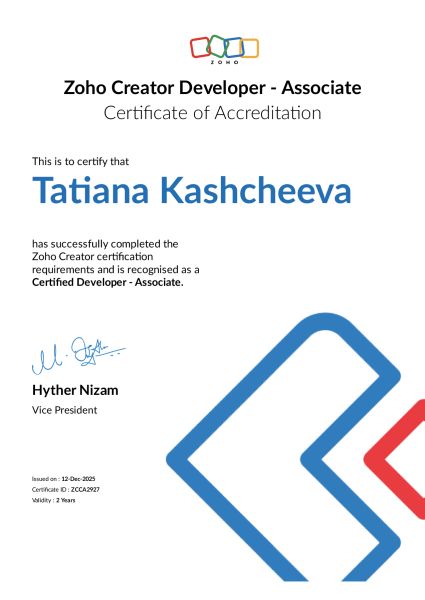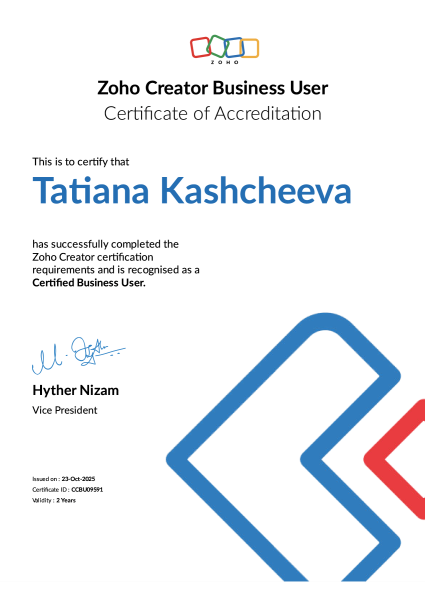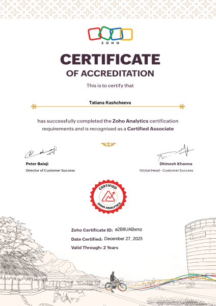We hold the following official certifications, graded by the Zoho Certification Team: