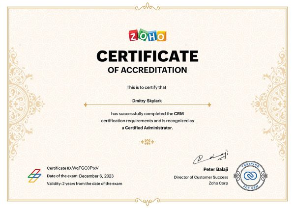 Certified Zoho CRM Administrator